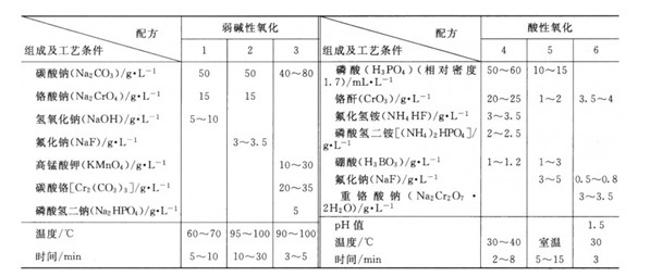 注:配方l適用于純鋁及鋁錳、鋁鎂等合金,但不適合含銅量高于4%的鋁合金,膜0.5~1μm;