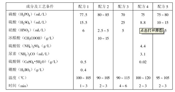 鋁及其合金化學拋光配方及工藝條件
