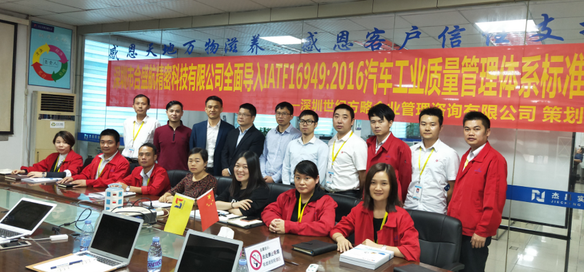 深圳市合盛航精密科技有限公司成立于2015年,隸屬于合航集團旗下企業。其它兄弟企業:深圳市新德慧科技有限公司、博羅縣合航實業有限公司、東莞市新和慧智能科技有限公司。2018年11月23日,合盛航IATF16949汽車質量管理體系啟動大會在我司深圳工廠隆重召開。大會由公司總經理潘道兵主持,深圳世紀方略企業管理咨詢有限公司沈恩賢先生主講,公司總經辦、各部門主管級以上管理人員出席了大會。